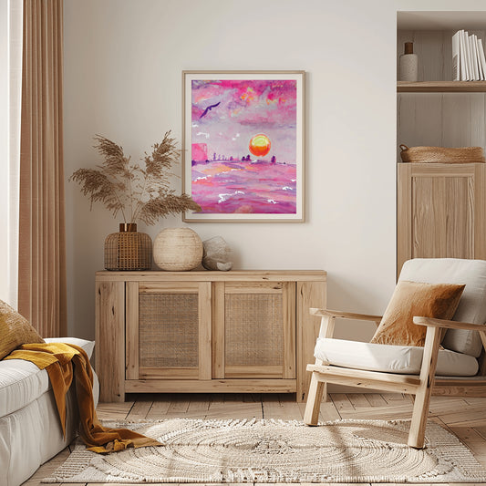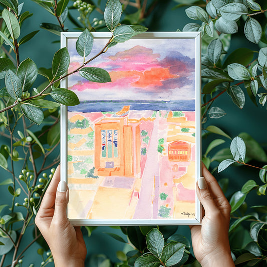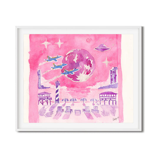 Beach Buzz Over The Moon Pink Pensacola Series Watercolor Print