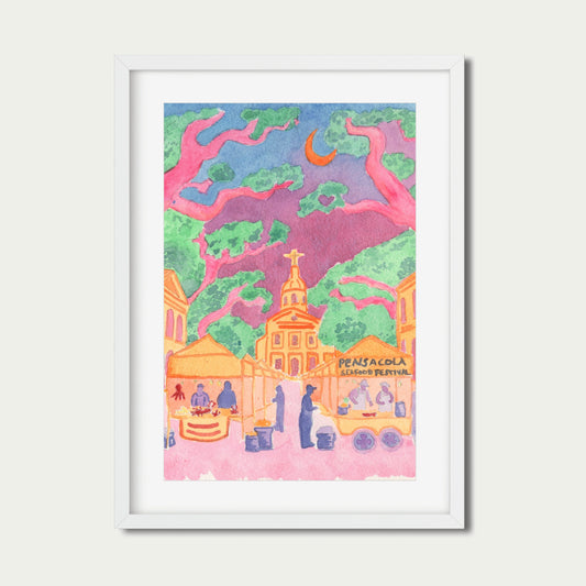 Pensacola Seafood Festival at Dusk Watercolor Print