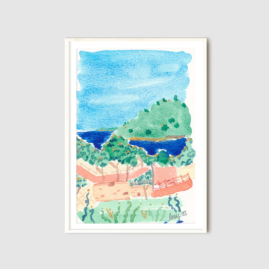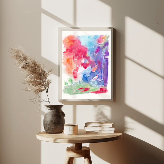 whimsical watercolor collection featuring landmarks in Pensacola and France on archival, giclee paper