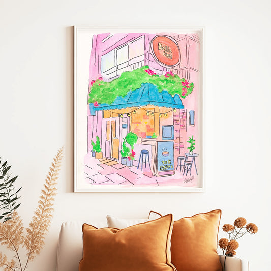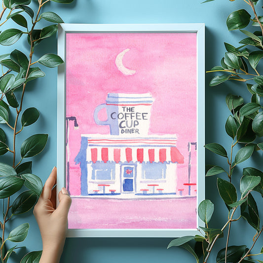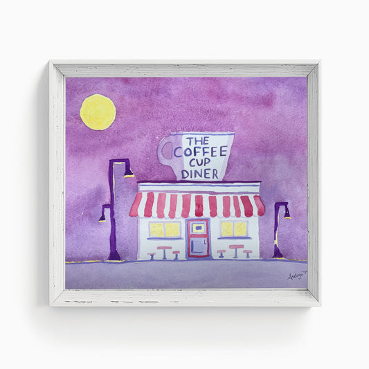 Coffee Cup Diner Pink Pensacola Series Watercolor Print