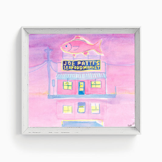 Joe Patti's in Neon Pink Pensacola Series Watercolor Print